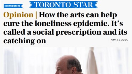 How the arts can help cure the loneliness epidemic. It’s called a social prescription and it's catching on: Toronto Star arcticle by Lola Rasminsky. READ ARTICLE